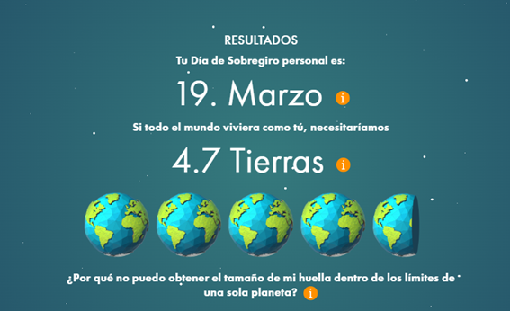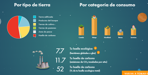 En aquesta sessió hem començat veient un vídeo en el qual ens explicava amb algunes dades el poc respecte que tenim cap al planeta. Ens diuen que pel 2050 necessitariem 3 planetes per a poder sostenir aquest estil de vida que portem com a societat. Després del vídeo vam entrar en una mena d'enquesta en la que havíem de respondre algunes preguntes sobre la nostre vida quotidiana (ús de cotxe, reciclatge...) i així ens deia la nostre empremta ecològica. I quants planetes necessitariem si totes les persones del món gastéssin igual que jo. A mi em va dir que necessitariem 4'7 terres si tots gastéssim com jo. La empremta de carboni és de 11,7 tonelades a l'any. També em va dir que el que més contamina és la "huella de carbono" i el "abrigo".